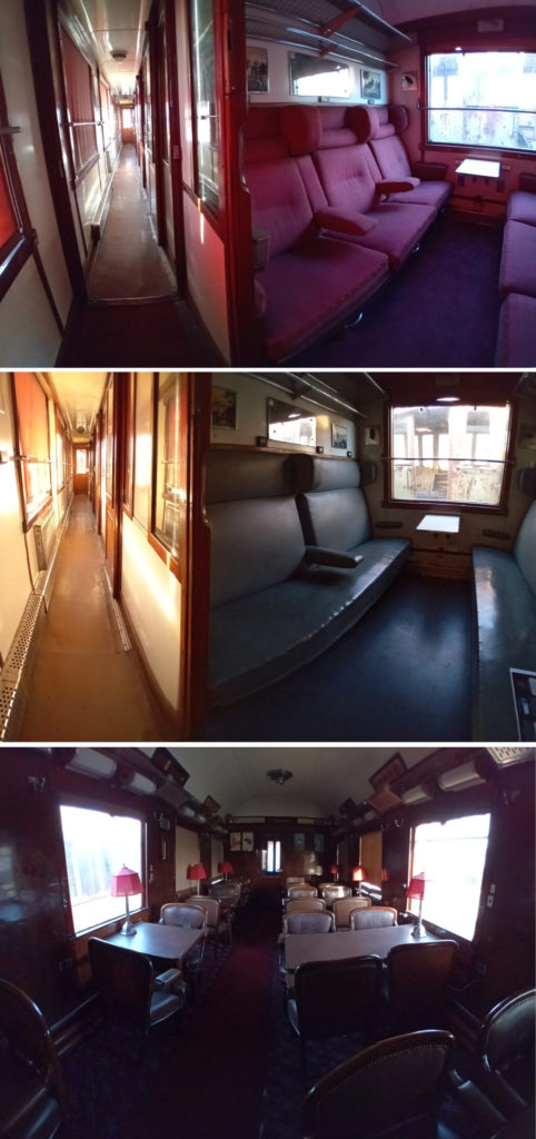 Train tracté par la locomotive vapeur de 1916, la 140C 231, composé de voitures voyageurs à compartiments (1ere et 2nde classe) des années 1920 et d’une voiture restaurant des années 1950.